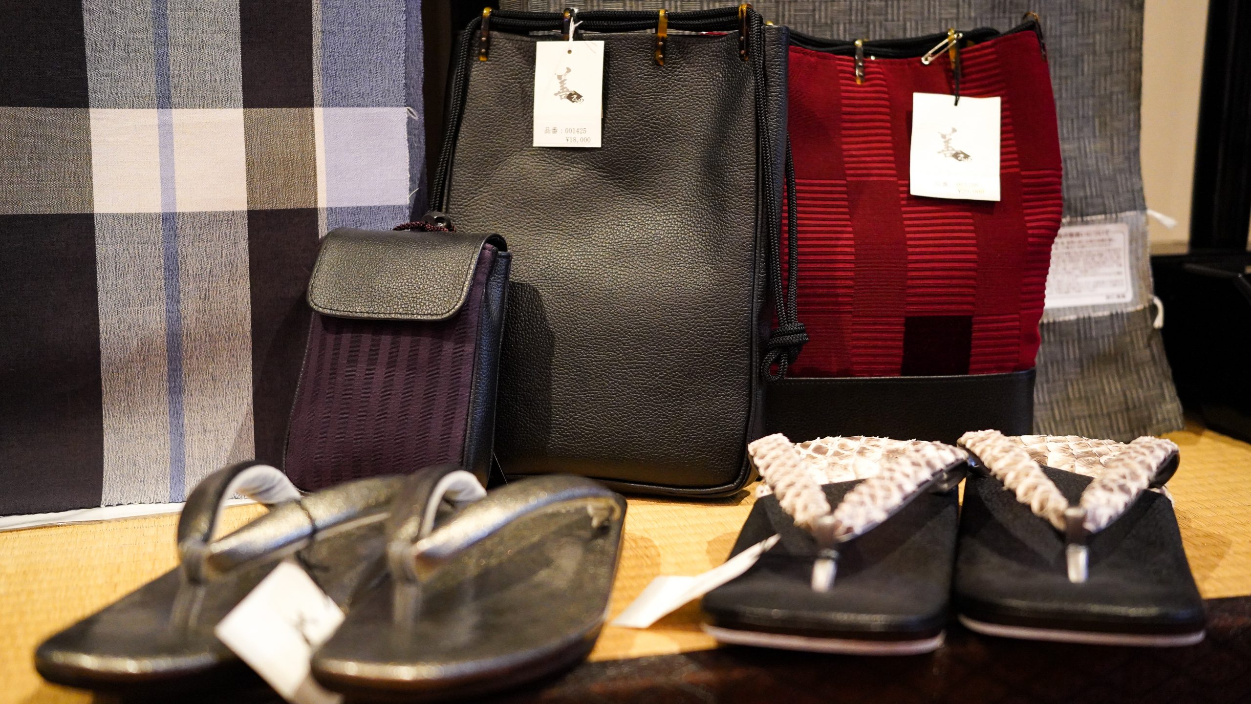 草履・鞄・扇子など、当店オリジナルのものから、店主が選りすぐったものまで、和装小物も男性用・女性用ともに販売しております。